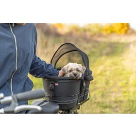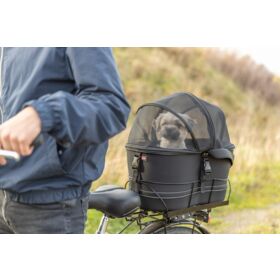 sturdy metal frame for safely transporting a pet on the bicycle rack (width 6–16 cm)
