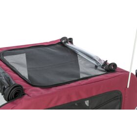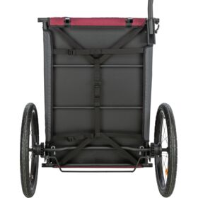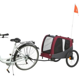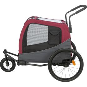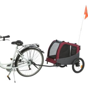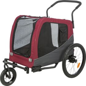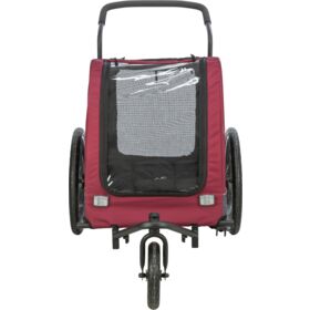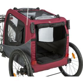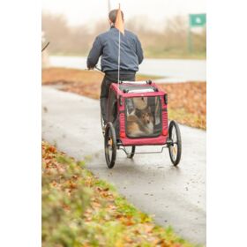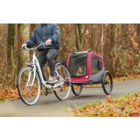 Bicycle tours are great outdoor fun for humans and their four-legged friends. However, for the dog such a trip can quickly become too exhausting. In the dog trailer, the dog can rest and take a break after a long run. Especially for older or sick dogs, the bike trailer is a great transport solution. In case of rain, a waterproof cover protects the dog from getting wet. At the same time, enough fresh air is provided by lateral mesh inserts. For more safety in traffic, the trailer has reflectors, reflective fabrics and a signal pennant. To attach the trailer to the bike, only the enclosed trailer hitch is needed. If you want to use the dog trailer on another bicycle as well, you can find a separate trailer coupling (#12819) in specialised stores. Especially convenient: With the buggy conversion kit (# 12815, #12817), the trailer can be converted into a buggy.