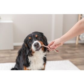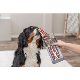 pechuga de pato (55 %), piel de vacuno (20 %), carne de vacuno (18 %), fécula de patata, glicerina, minerales | fórmula sin gluten | sin azúcar añadido | Conservar en un lugar fresco y seco.