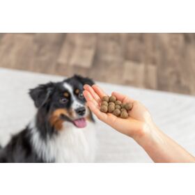 pescados y subproductos de pescado (incl. 67 % de salmón), carnes y subproductos animales, propilenglicol | fórmula sin gluten | sin azúcar añadido | Conservar en un lugar fresco y seco.